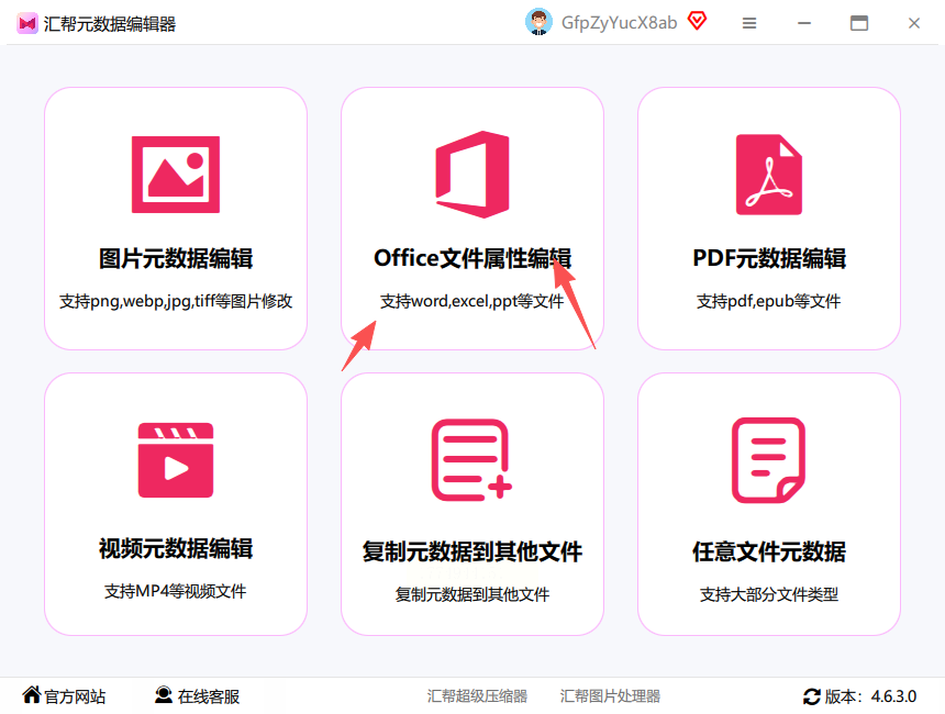 1. 启动软件:打开汇帮元数据编辑器,在功能菜单中选择“office文件属性编辑”模块;