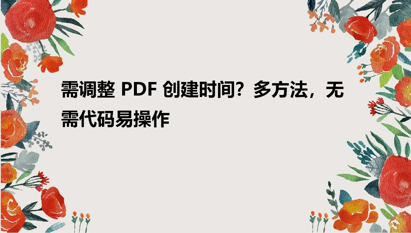 通过以上九种方法,你可以根据实际需求灵活选择适合的工具来修改PDF文件的创建时间。每种方法都有其独特的优势和适用场景,从图形化界面到命令行操作,覆盖了不同用户的技术偏好。元数据调整虽然是一个小功能,但在文档管理的规范性和效率提升方面却能发挥重要作用。掌握这些技巧后,你可以更自如地处理PDF文件的时间属性,确保它们符合归档、提交或备份的要求。如果在操作过程中遇到特殊问题,建议参考工具的官方文档或社区支持资源。希望本指南能帮助你高效完成PDF元数据的各项调整任务。
