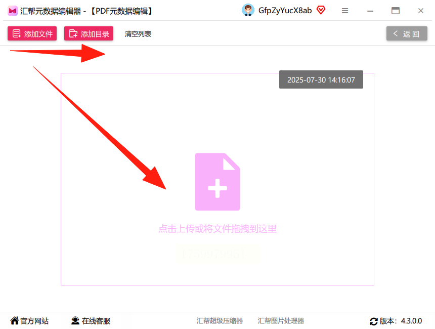 步骤一:下载并打开汇帮元数据编辑器,在主界面中找到“PDF元数据编辑”功能按钮,点击进入。
