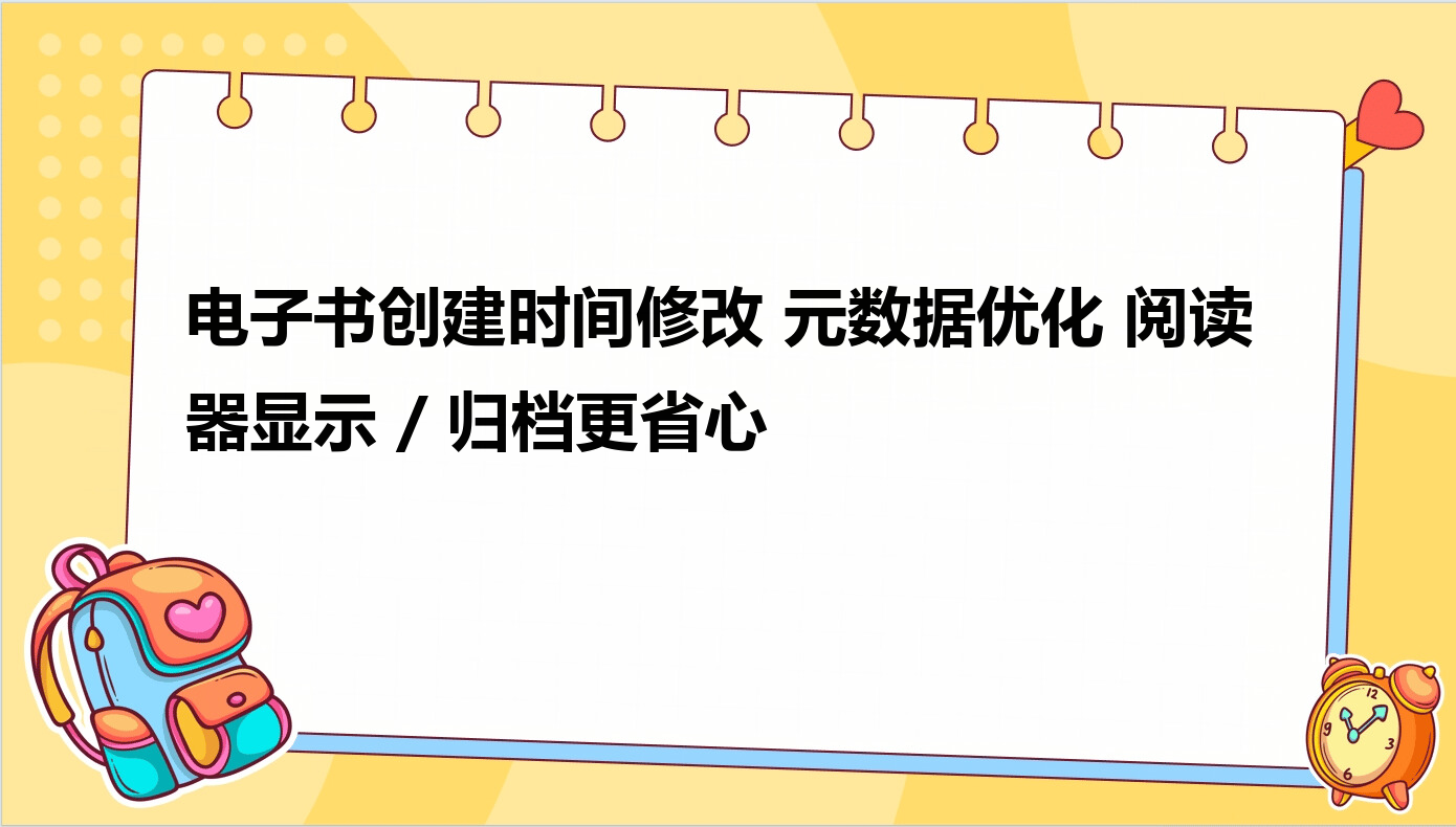 在数字资料管理中,电子书创建时间混乱是个常见问题。无论是整理个人电子书库、适配阅读器排序规则,还是统一归档时间,修改创建时间都能让文件管理更清晰。今天就来介绍教你轻松修改电子书创建时间,还能保持文件内容和格式不变。