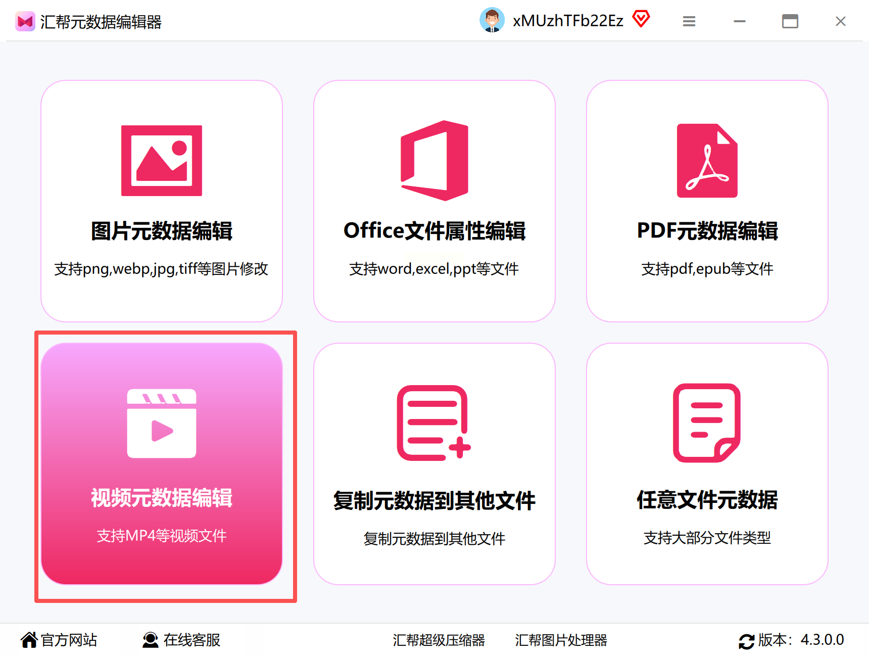 Step1:打开软件,选择视频元数据编辑这个功能,支持MP4等视频格式的属性修改