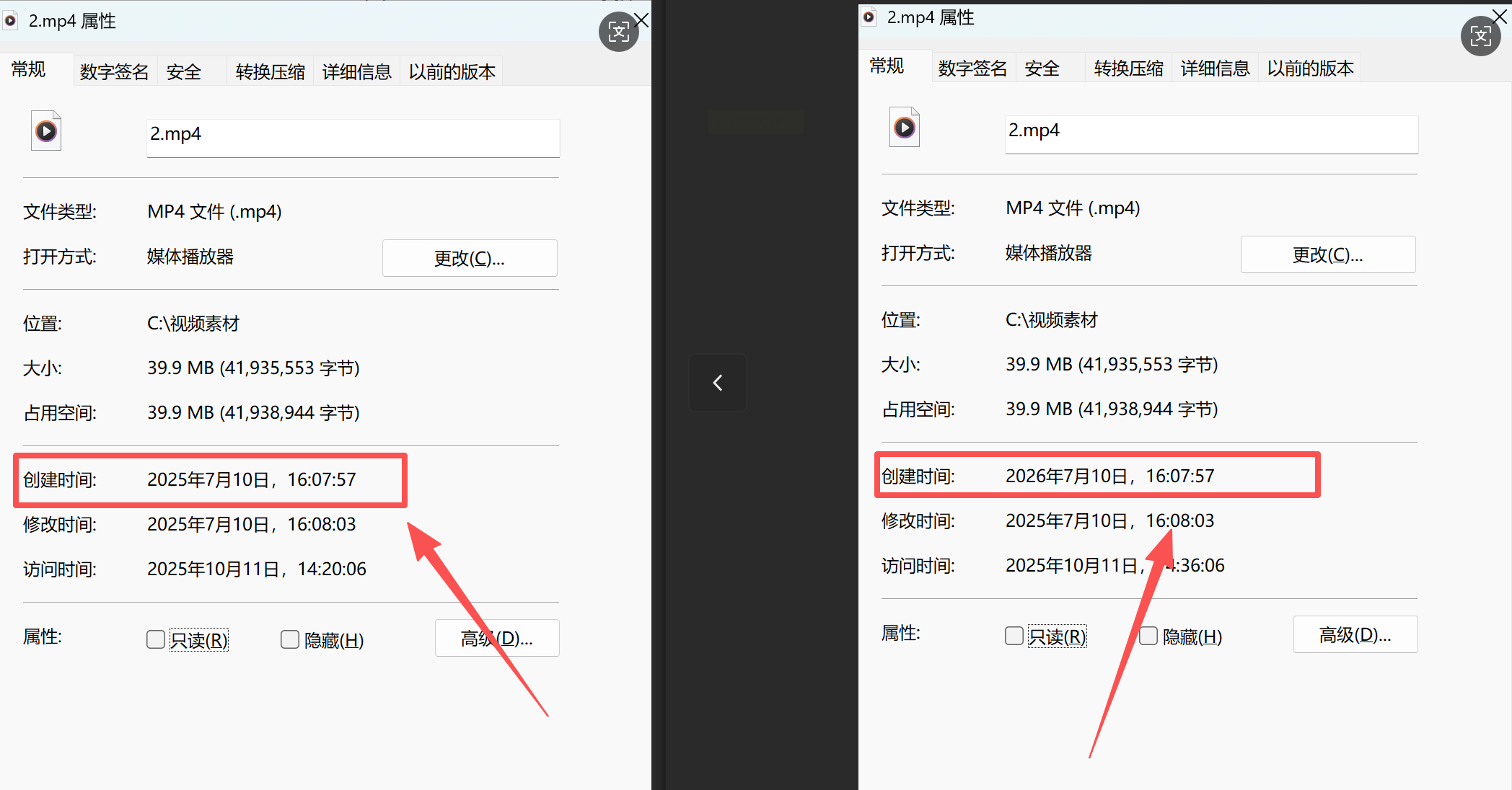 Step5:转换完成后,右键查看视频属性,确认时间已修改。