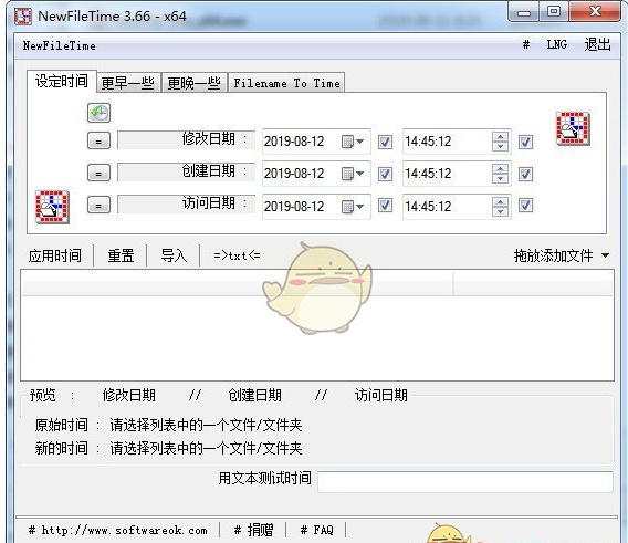 NewFileTime是一款专业的文件时间属性修改工具,它提供了绝对时间和相对时间两种调整模式,后者可以让你将所有文件的日期统一向前或向后调整一个固定的时长。