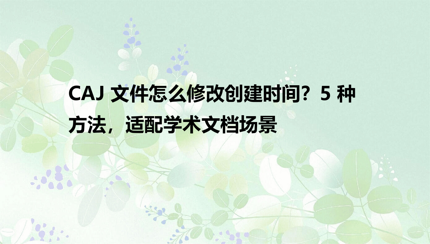 在学术研究中,CAJ文件作为常见的文献格式,其创建时间的准确性往往影响项目归档和时间线梳理。无论是调整论文创作时间匹配项目节点,还是规范历史文献的时间戳,掌握CAJ文件时间修改方法都能大幅提升文件管理效率。本文将详细介绍修改CAJ文件创建时间的具体步骤,让你轻松搞定文件时间调整。