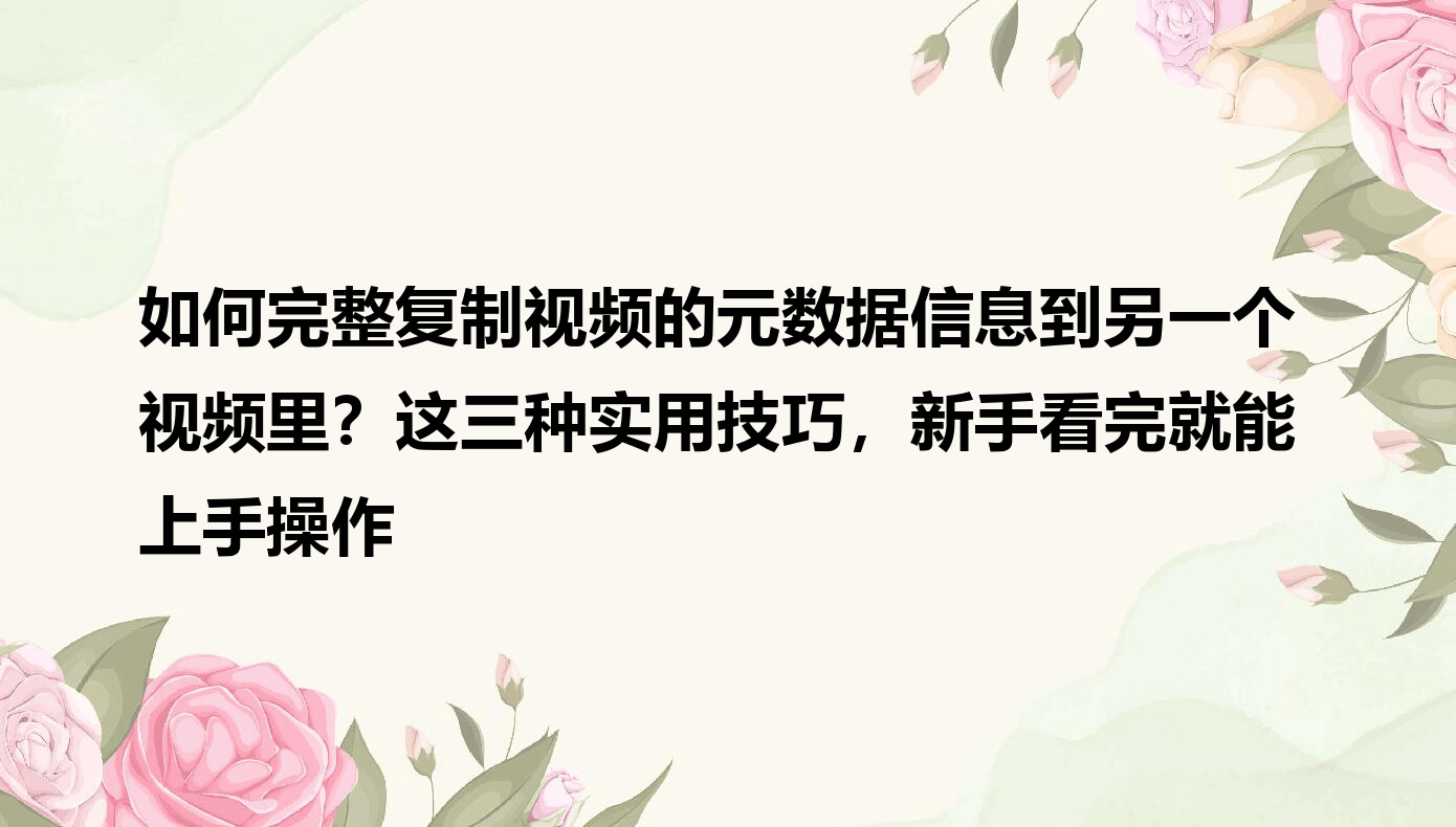 在数字时代,视频内容无处不在。无论是自媒体创作者、影视从业者,还是普通用户,我们经常需要处理视频文件。你有没有遇到过这样的情况:拍摄了多个视频,但元数据——比如拍摄时间、分辨率、版权信息等——只存在于其中一个文件中,而其他视频却缺失这些关键细节?手动重新输入这些信息不仅繁琐,还容易出错。想象一下,如果你能像复制粘贴文本一样,轻松地将元数据从一个视频转移到另一个,那该多高效啊!