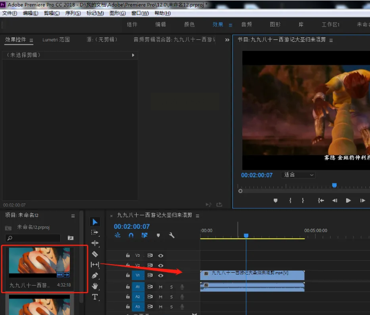 步骤3:将视频拖到时间轴。长按鼠标左键,把源视频从项目面板拖动到右侧的时间轴上。然后,同样把目标视频拖到时间轴的另一个轨道或位置。确保它们都在可视范围内。