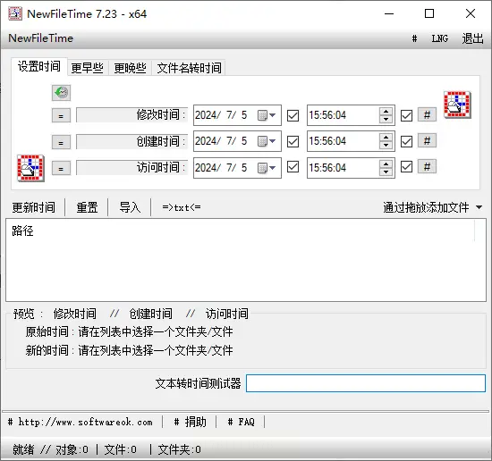 步骤一:NewFileTime是一款广受好评的免费工具。它支持批量修改文件的创建日期、修改时间及最后访问时间。操作时,只需将目标图片拖入软件界面,在弹出窗口中设定理想时间,点击确认即可完成调整。