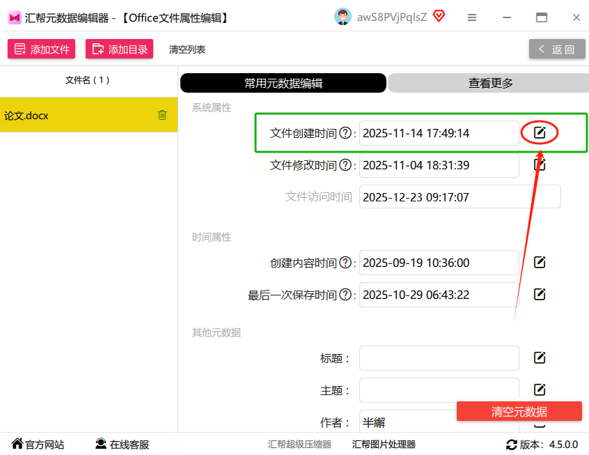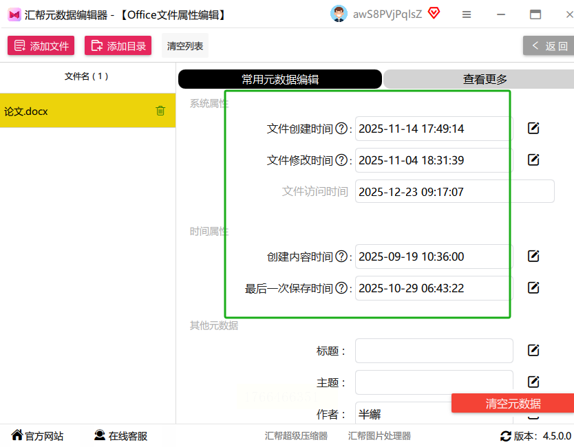 文件加载成功之后,软件界面的另一侧,或者下方,会自动显示出这个文件的所有元数据信息。就像一份详细的档案表,上面清清楚楚列着:创建时间、最后一次修改时间、作者、标题、主题等等。这一步很重要,是让你确认一下,当前的时间是什么,以及你具体要改哪一项。别急,看准了再下手。