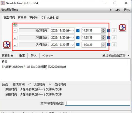 2. 核心功能通常就几块:设置一个具体的日期时间(创建、修改、访问时间可以分别设或一起设);几个快捷按钮,比如“更早些”、“更晚些”,点一下就能把时间往前或往后推一个固定间隔;有时还有个“从文件名提取时间”的趣味功能。