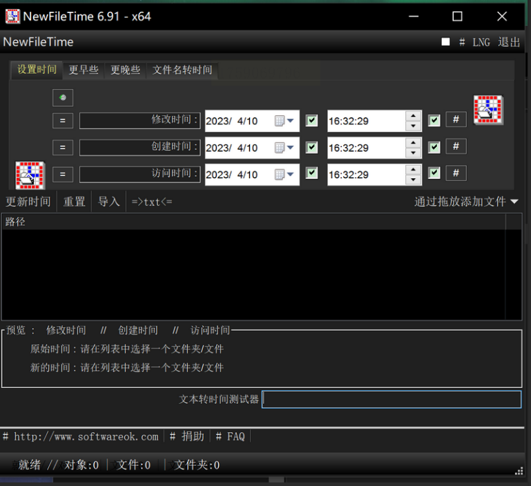步骤一:下载并安装NewFileTime工具,打开软件主界面。