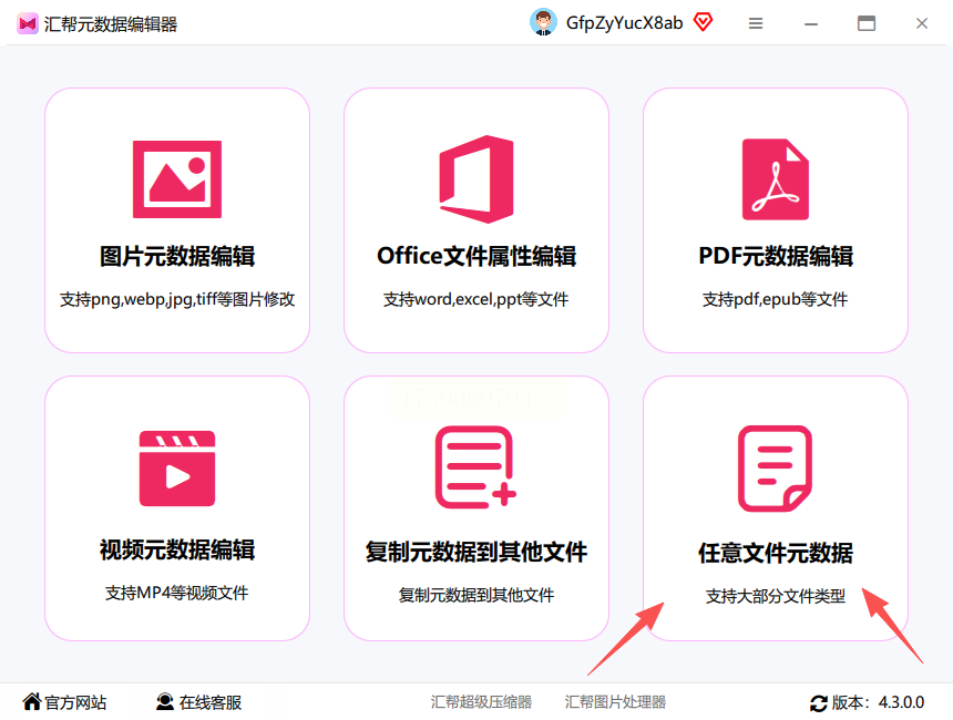 步骤一:下载并打开汇帮元数据编辑器软件。在初始界面中,找到并点击“任意文件元数据”选项,这个功能通常位于主菜单的显眼位置。