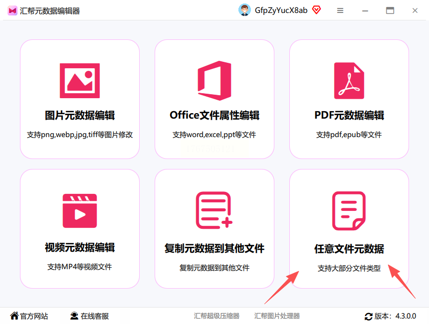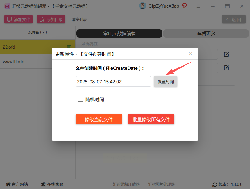打开软件后,在主界面找到"任意文件元数据"选项并点击。这个功能模块能让你对各种格式的文件元数据进行编辑,包括OFD文件的时间信息。