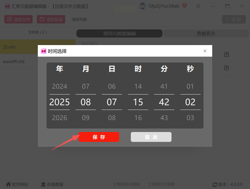 这款工具体积小巧,无需安装即可使用,专注于批量修改文件时间戳。它支持精确到秒的时间调整,适合大量OFD文件的统一处理需求。