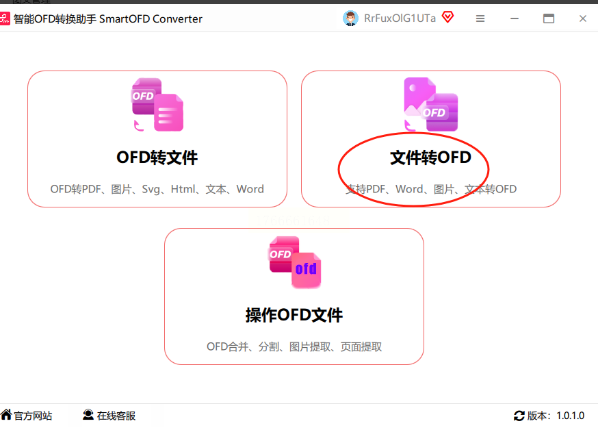 进入官网首页后,在页面上找一找,通常会有一个明显的“PDF转OFD”功能入口。可能是在导航栏,也可能在功能列表里,点击它。