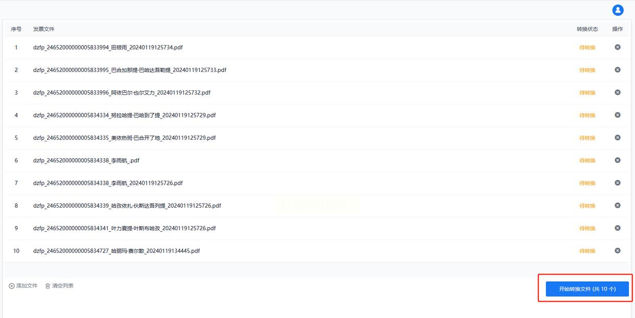 文件上传后,找到并点击“转换”按钮,系统便会开始处理。