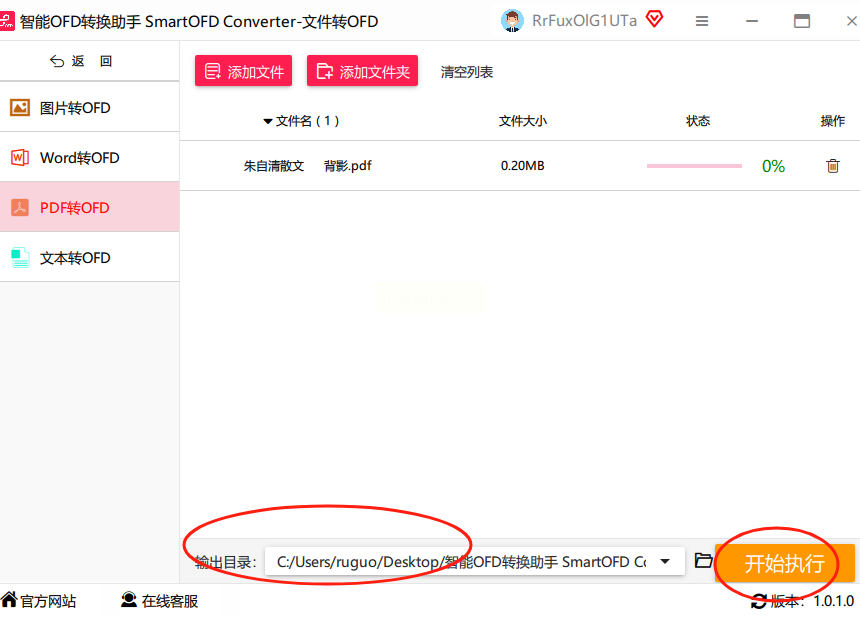 进入功能页后,先看一眼左侧。确保选中的是“PDF转OFD”模式,通常软件自己就默认选好了。然后,看右边区域。点击那个醒目的“添加文件”按钮。有个更快的技巧:你可以直接把电脑里的PDF文件,用鼠标拖拽到这个软件窗口里,松手就行。这个方式支持批量添加,一下子拖好几个文件进去都可以,特别方便。