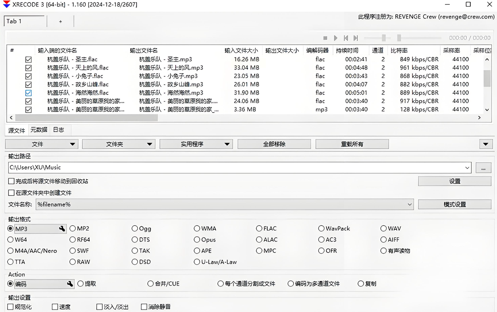 XRECODE3以其"体积小、效率高、功能全"的特点,在专业音频爱好者中颇受欢迎。其界面采用深色主题设计,操作逻辑清晰,特别适合处理大量音频文件。