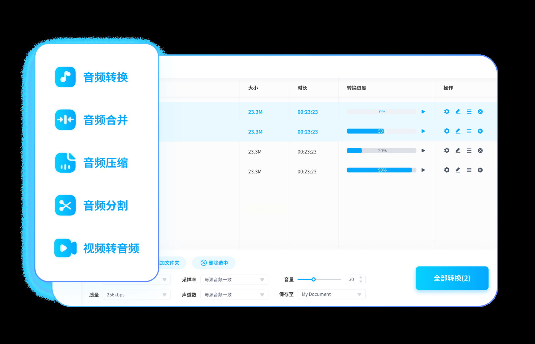 优势特点:支持200+音频格式互转,内置音频编辑工具(如裁剪、合并),适合需要一站式处理的用户群体。