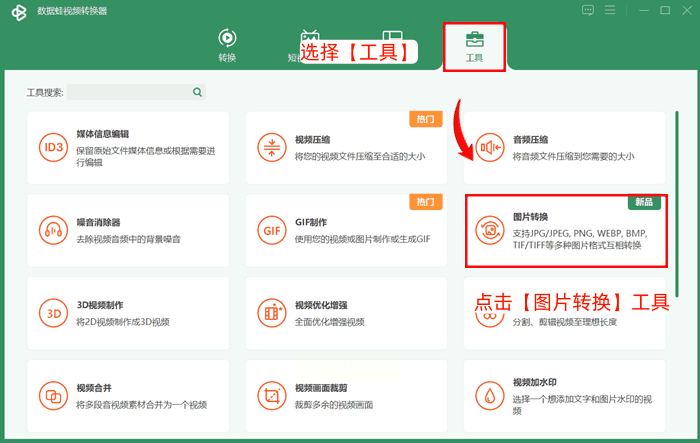 1. 启动软件,找到顶部“工具”栏,点开就能看见“图片转换”图标。