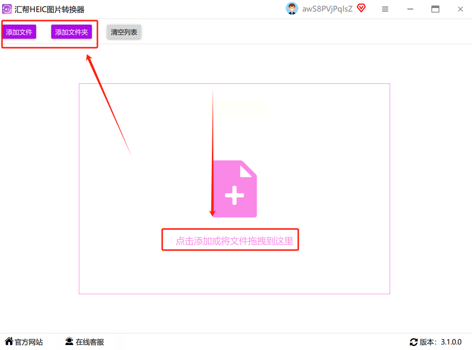 2. 把你的HEIC照片拽进来,支持批量拖拽,几十张一起传也没问题。