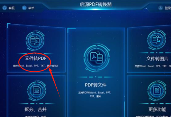 打开启源软件,第一眼看到的主界面可能更简洁一些。 它通常会把“文件转PDF”作为一个核心大类放在显眼位置。咱们就点击这个“文件转PDF”进入。