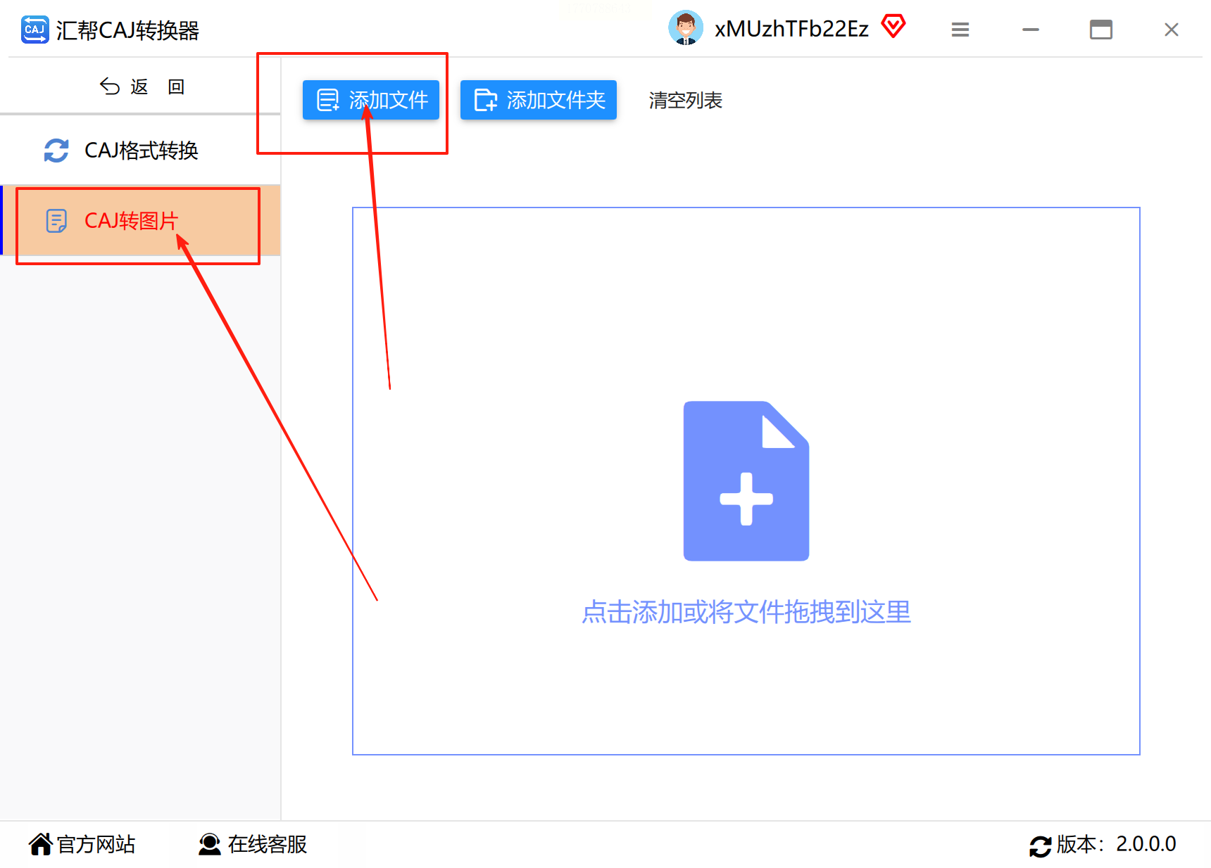 步骤二:进入转换功能页后,您会看到明显的“添加文件”或“拖拽文件至此”的按钮或区域。点击按钮从文件夹中选择,或者更简单地将需要转换的CAJ文件直接拖拽到软件窗口内,软件支持一次性添加多个文件以实现批量处理。
