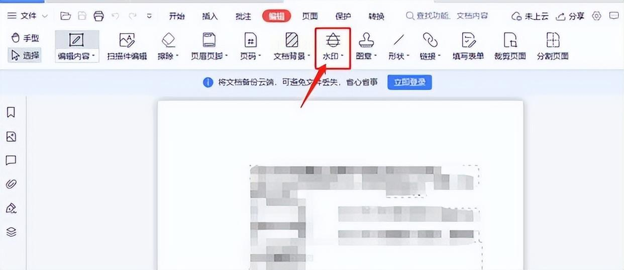 在WPS顶部的菜单栏里,找到并点击 “编辑” 这个选项卡。在下拉的功能区里,仔细找找,有一个 “水印” 功能。点击它,然后选择 “点击添加”。