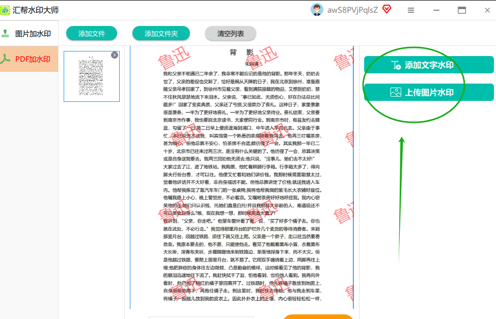 文件添加成功后,你的注意力可以移到软件右边了。这里就是设置水印的核心区域。你会看到有选项让你选择水印是 “文字水印” 还是 “图片水印”。咱们先讲文字的,图片的后面会提到。