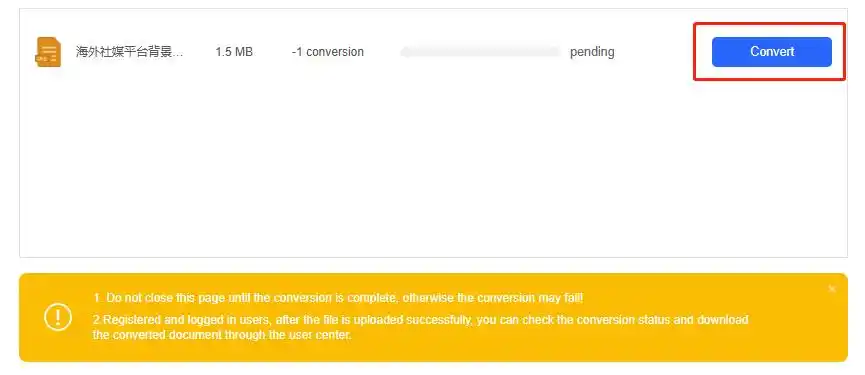 4. 选择文件后,点击“Convert”按钮开始转换。
