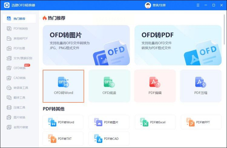 首先,你需要在正规渠道下载汇帮OFD转换器(注意:请通过官方渠道获取,确保软件安全可靠)。安装完成后,双击桌面图标打开软件,在主界面中找到“OFD转文件”选项,点击进入操作界面。