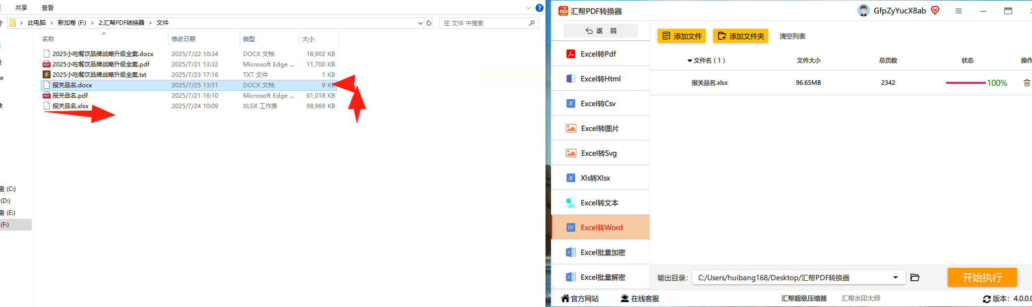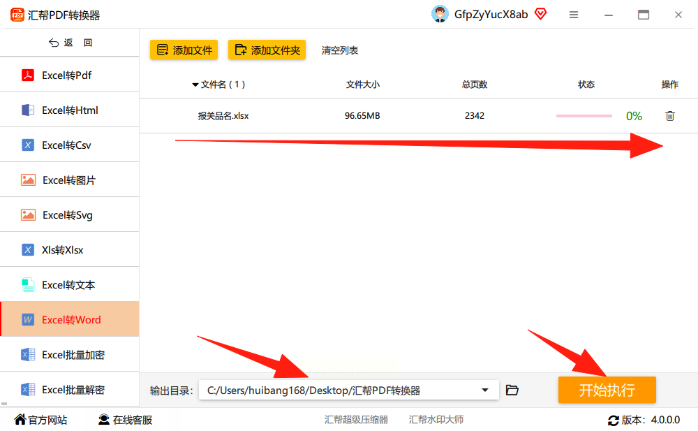4. 开始转换:点击「开始执行」按钮,等待进度条走完,转换后的Word文件会自动在目标路径生成。