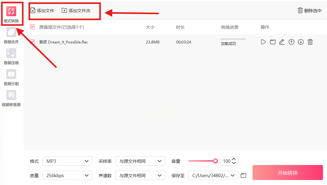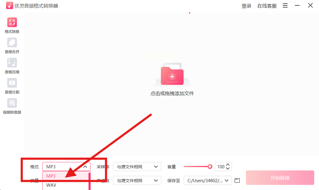 2. 拖入文件,系统会自动识别格式,不用手动选