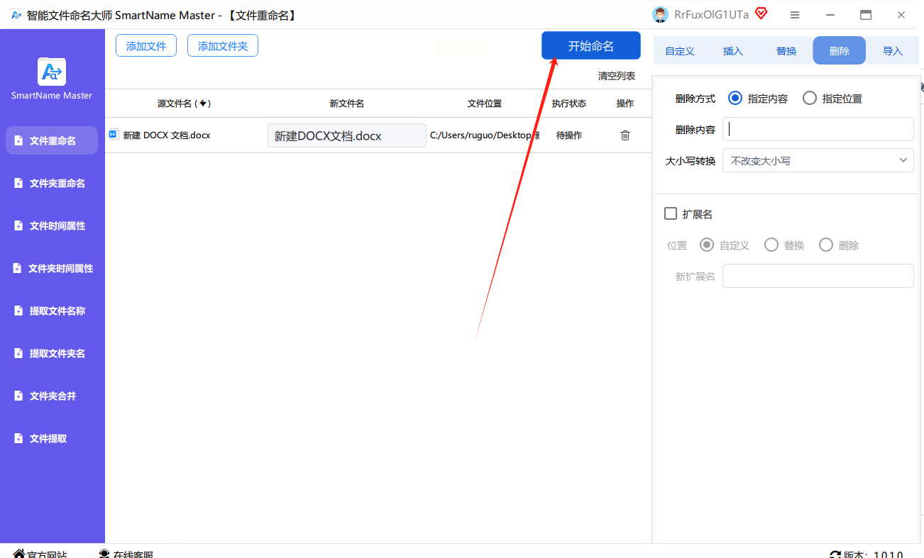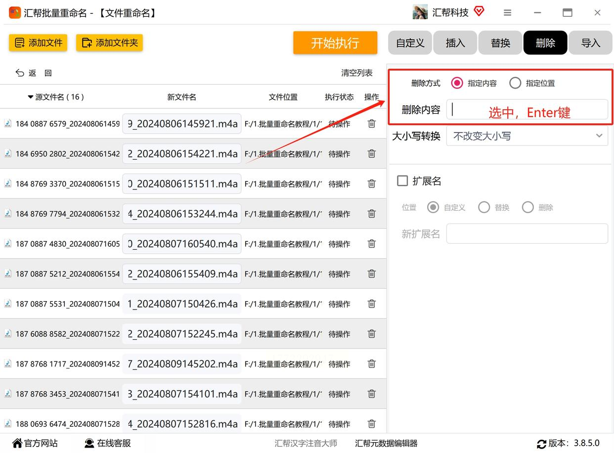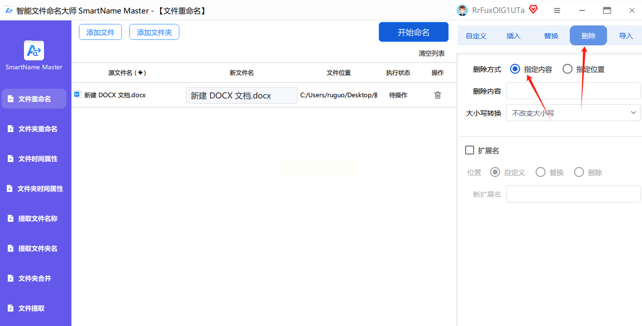 - 指定内容删除:在输入框中按一次空格键(软件会自动识别空格字符),预览区可实时看到文件名变化