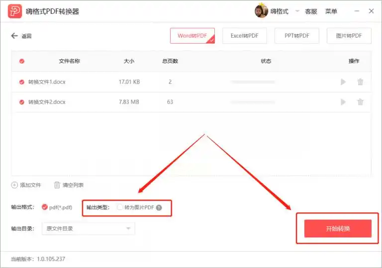 3. 设置输出参数:在转换界面下方,你可以选择输出类型,比如“图片PDF”或“文字PDF”。如果选择“图片PDF”,转换后的文件将无法编辑,适合用于保护文档内容;“文字PDF”则可以保留原文档的可编辑性。同时,你还可以设置输出目录,选择文件保存位置。