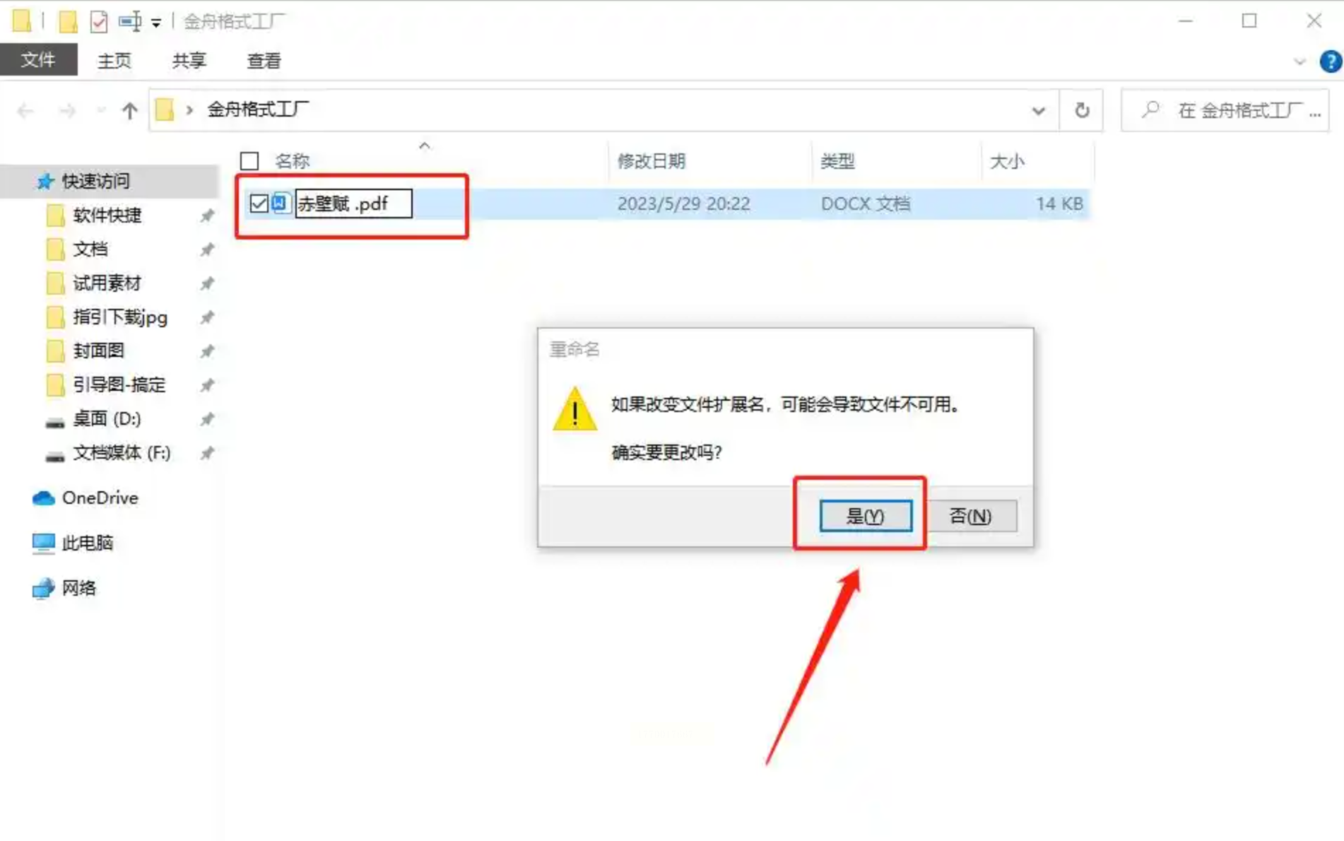 3. 确认修改:修改后会弹出一个提示窗口,询问你是否确认更改扩展名。点击“是”即可完成转换。需要注意的是,这种方法只是修改了文件的扩展名,实际上并没有真正转换文件格式,可能会导致文件无法正常打开。如果文件内容较多或格式复杂,转换后可能会出现排版错误,所以仅推荐用于临时测试或简单文档。