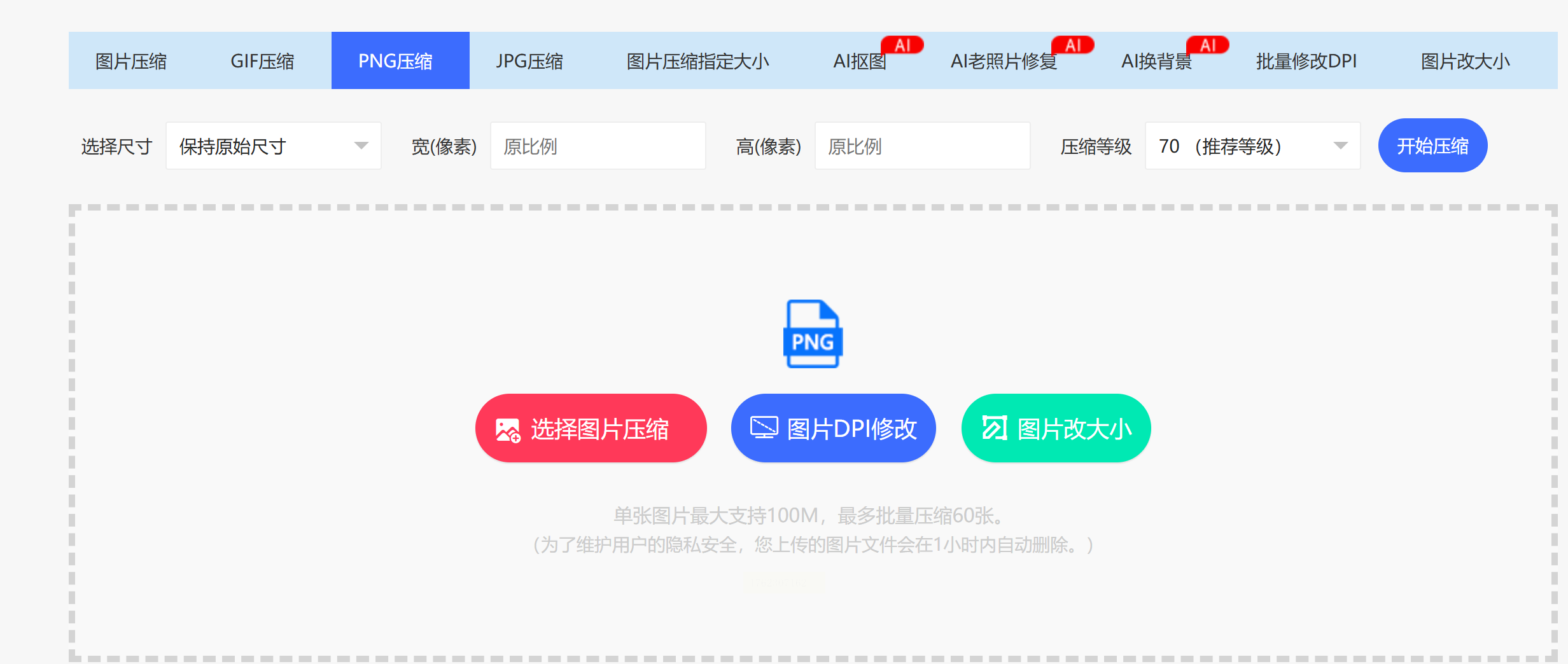 1. 打开网站并上传:在浏览器里搜索“压缩图”,进入官网。首页就能看到各种压缩选项,直接点击“PNG压缩”功能,进入专用页面。