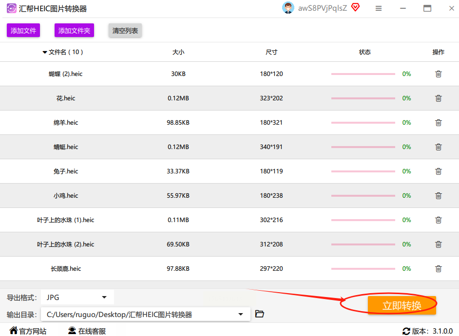 4. 最后点“转换”按钮,软件会默默处理,进度条走完就OK啦!转换完的图片会自动打开保存位置,你直接复制粘贴到需要的地方就行。