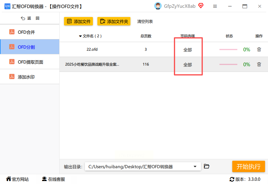 步骤二:进入操作界面后,左侧是功能选择区。在这里找到并点击“OFD分割”或类似的功能选项。然后,在右侧的区域上传你的OFD文件,这个软件支持一次性上传多个文件进行批量处理。