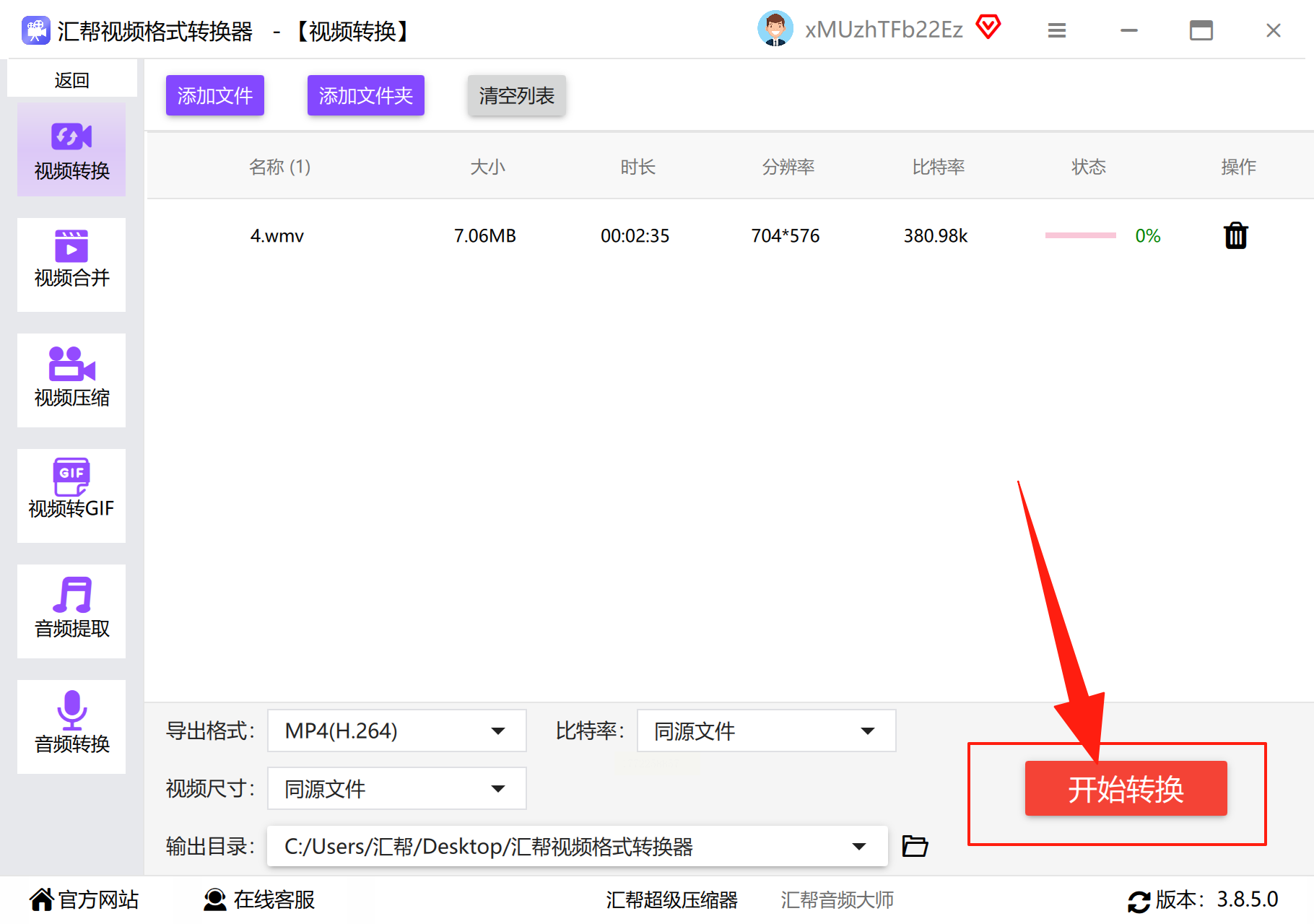 打开汇帮视频格式转换器后,主界面会清晰展示各类视频处理功能。找到并点击“视频转换”模块,该模块支持包括WMV、MP4在内的200+种视频格式互转,界面设计简洁直观,即使是新手也能快速上手。