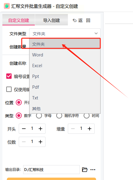 3. 设置文件类型:下拉菜单选"文件夹",其他类型像PDF、PPT也能一键生成,太实用了!