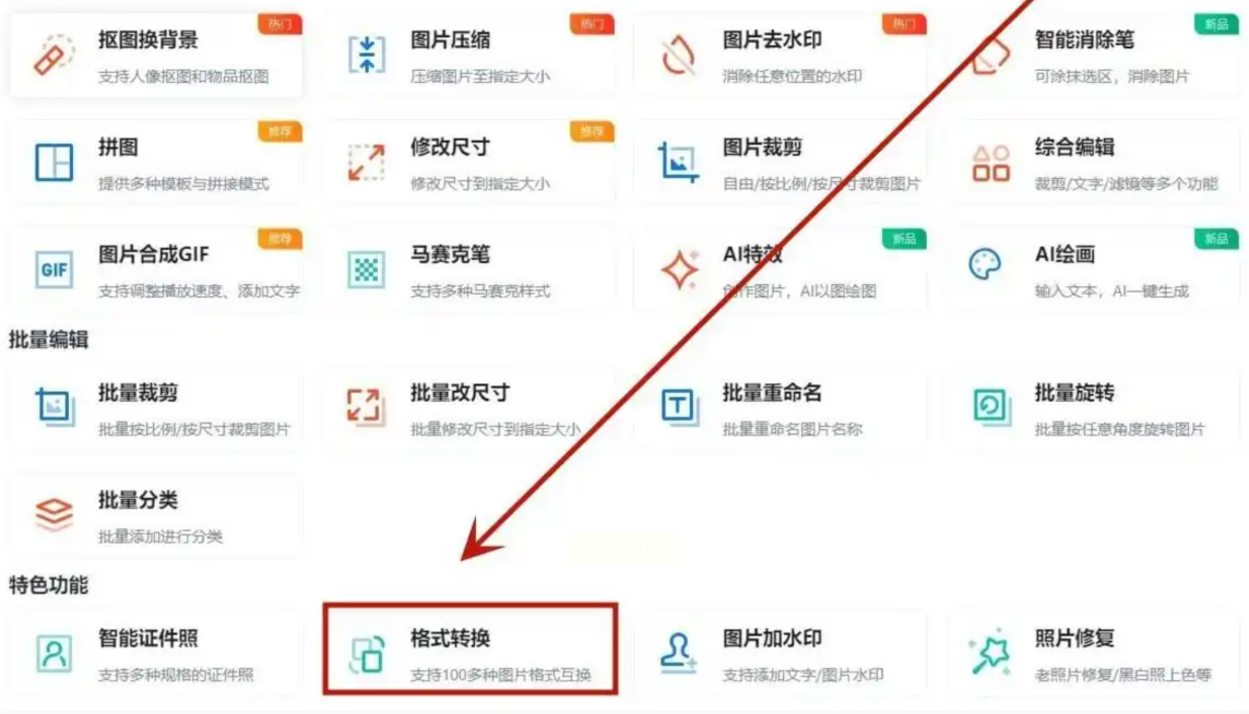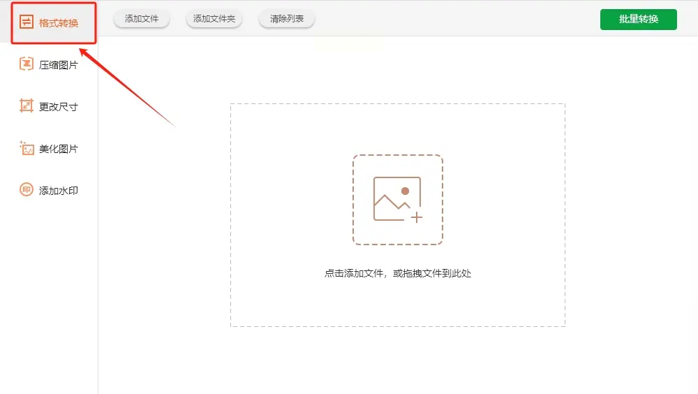 软件界面很清爽,左边是功能菜单,找到“格式转换”点击进入,像点外卖选菜品一样简单。