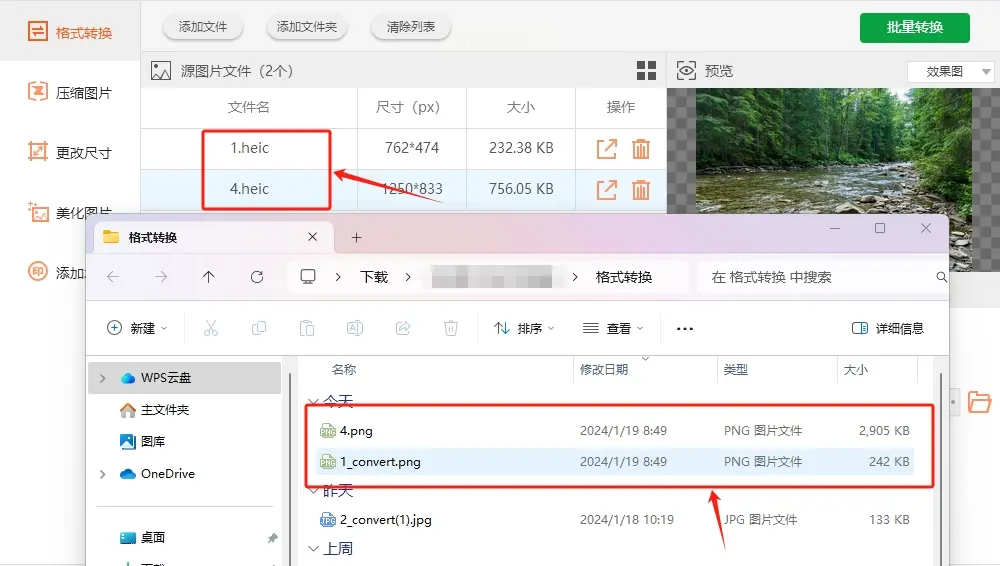 转换前可以先预览图片,确认无误后点击“开始转换”,转换后的PNG会同时保留原图尺寸和清晰度。