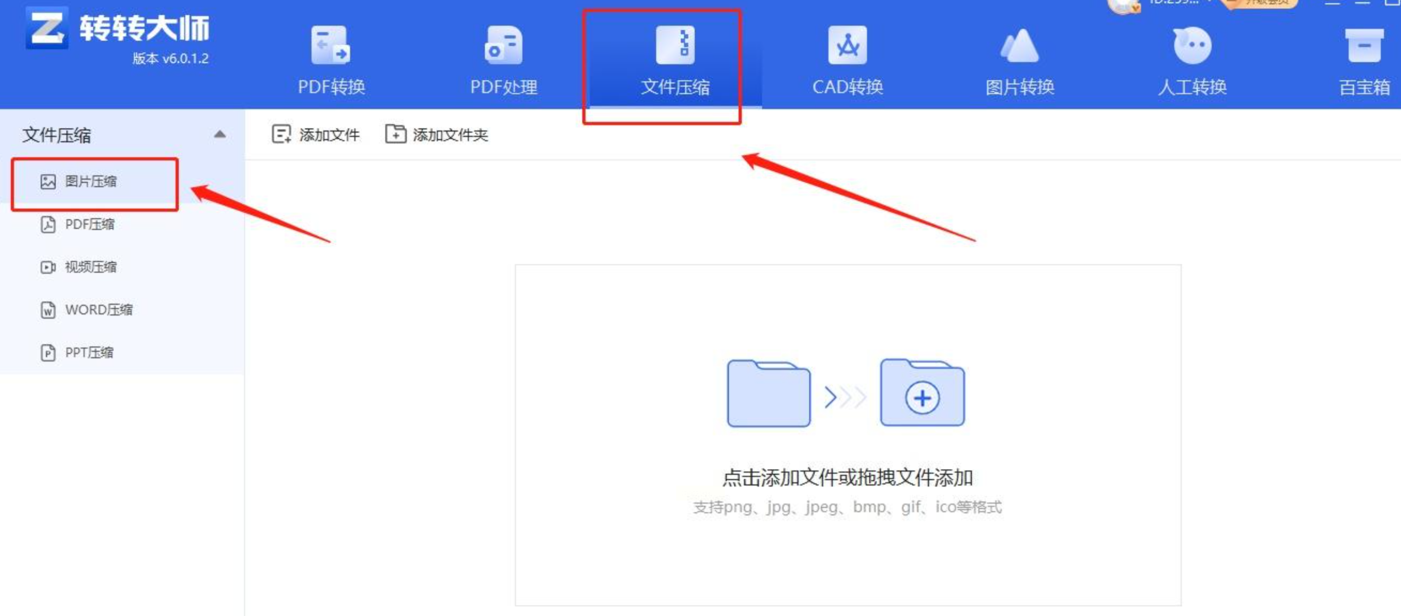 步骤二: 通过“添加文件”或直接拖拽的方式,导入你的图片。