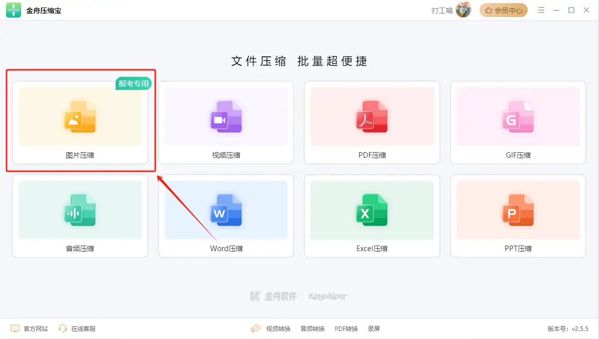 步骤一: 启动软件后,在主界面清晰找到并选择“图片压缩”功能模块,它通常兼容JPG、PNG等常见格式。