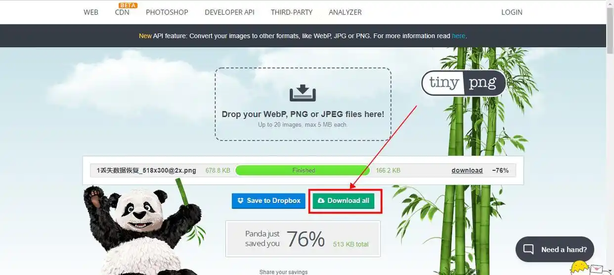 步骤三: 压缩完成后,点击“Download all”按钮,就可以将处理好的图片打包下载到本地了,整个过程非常流畅。