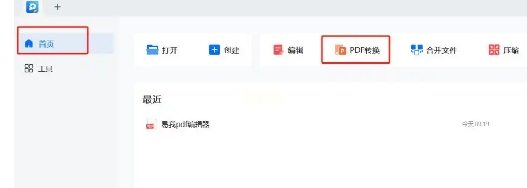 打开易我PDF编辑器,首页就能看到“PDF转换”按钮,或者点“工具”菜单里的“PDF转Word”,都一样。