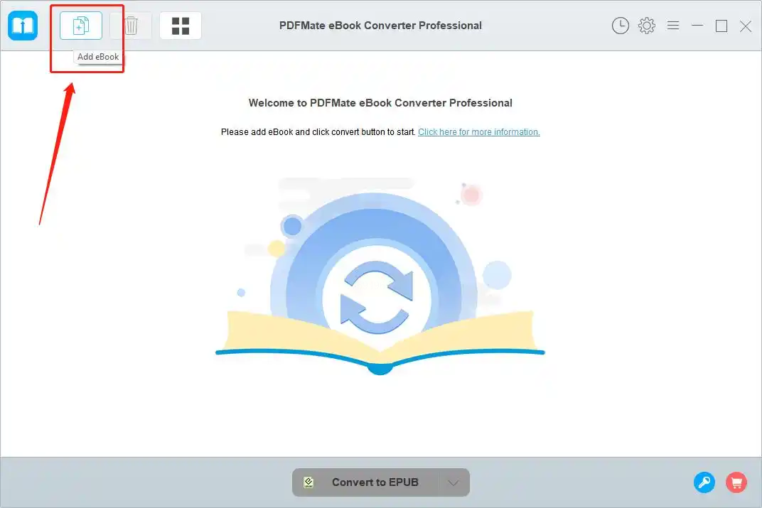 1. 打开PDFMate软件,点击顶部「Add eBook」按钮添加AZW3文件。