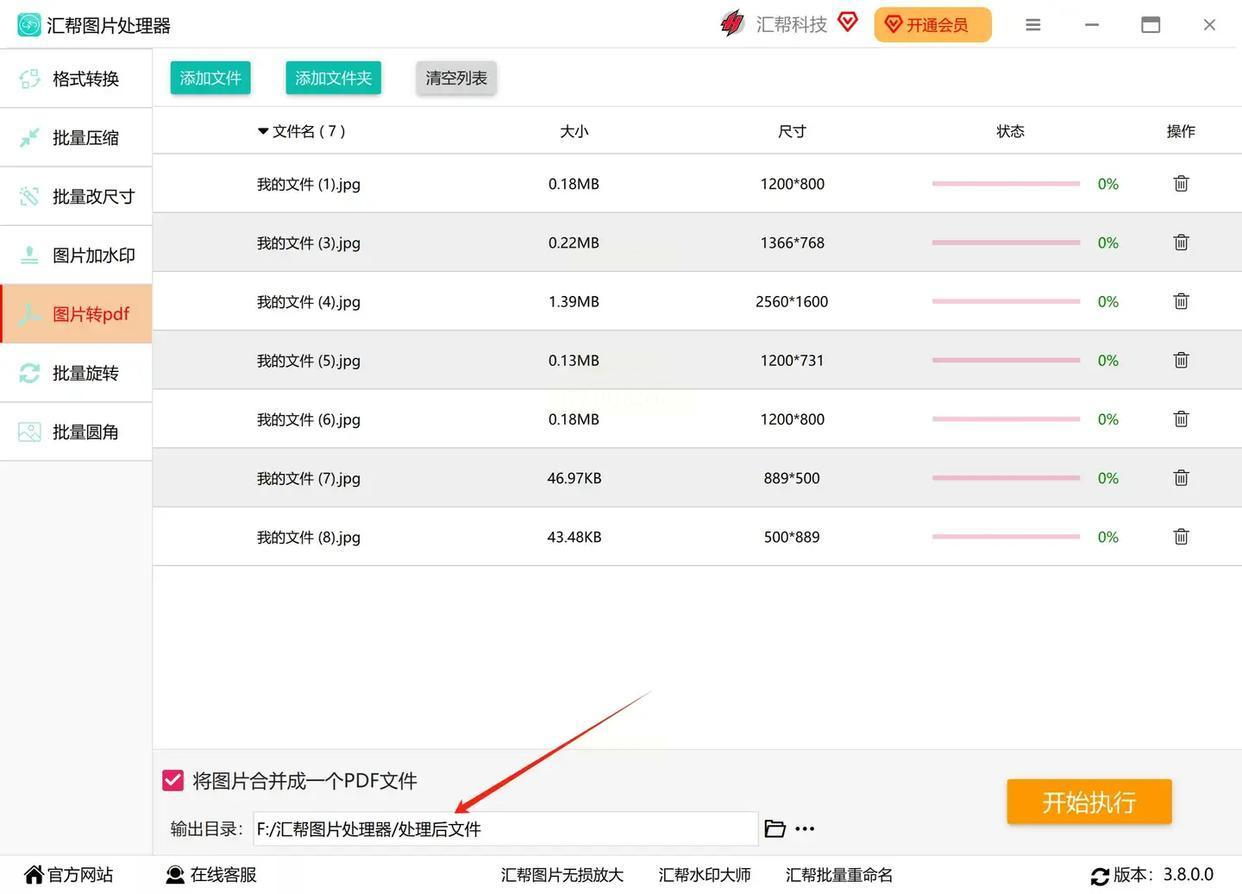 6. 开始转换:最后点击“开始执行”按钮,软件会自动开始转换,进度条走完后,你就可以去刚才设置的文件夹里查看转换好的PDF文件了。