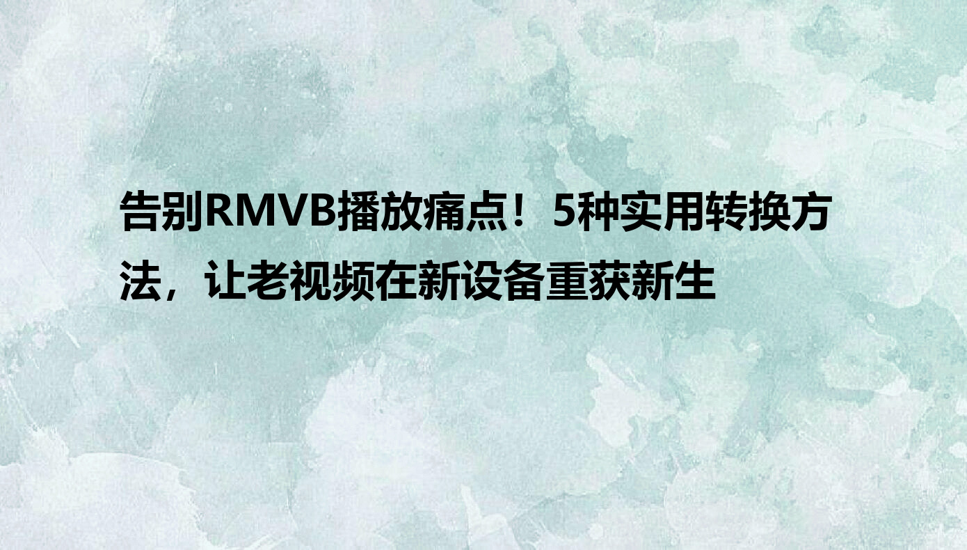 在数字影音的发展长河中,RMVB曾是低带宽时代的"画质与存储平衡大师",那些老电影、纪录片的珍贵记忆都藏在这种格式里。但如今主流播放器、手机和智能电视早已对它"说再见",卡顿、无法播放成了痛点。如果你还在为转换格式发愁,本文将从实用角度拆解5种专业转换方法,无论你是电脑小白还是办公达人,都能找到适合自己的操作方案,让老视频重获新生。