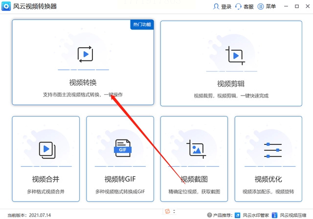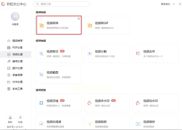 1. 定位视频功能:打开软件后,在左侧工具栏找到"视频处理"分类,点击"视频转换"进入独立处理界面。